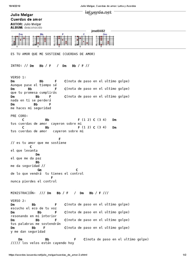 Julio Melgar Cuerdas De Amor Letra Y Acordes 2 - Cuerda es un termino alternativo para cuerdo.