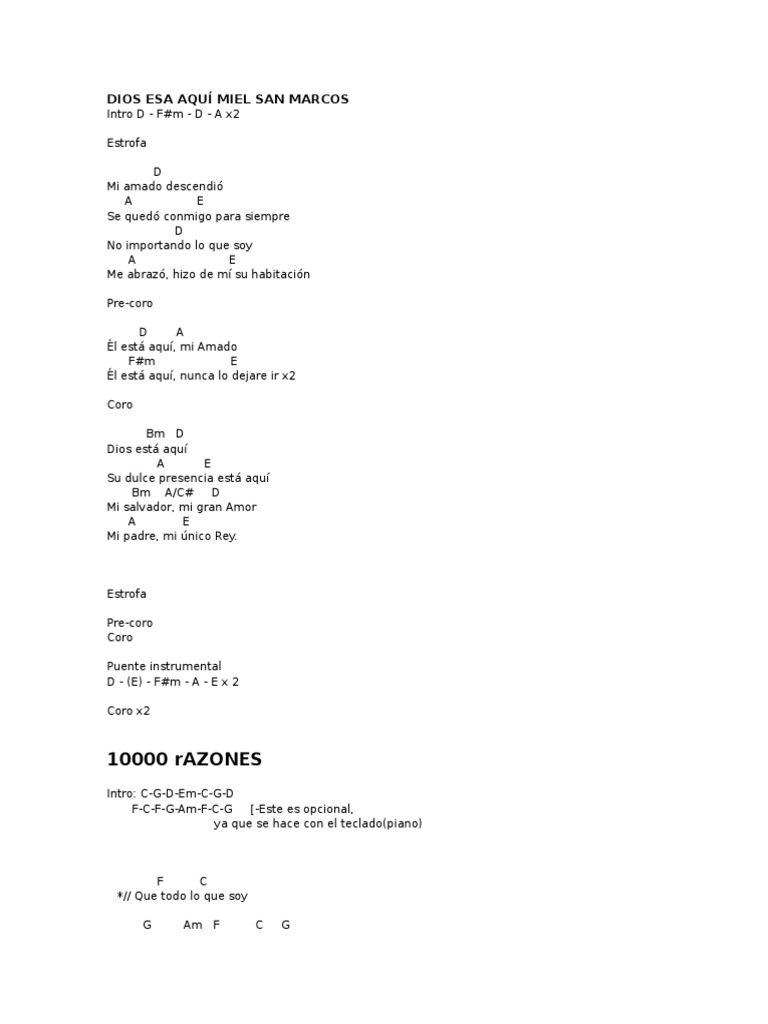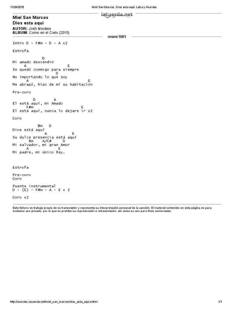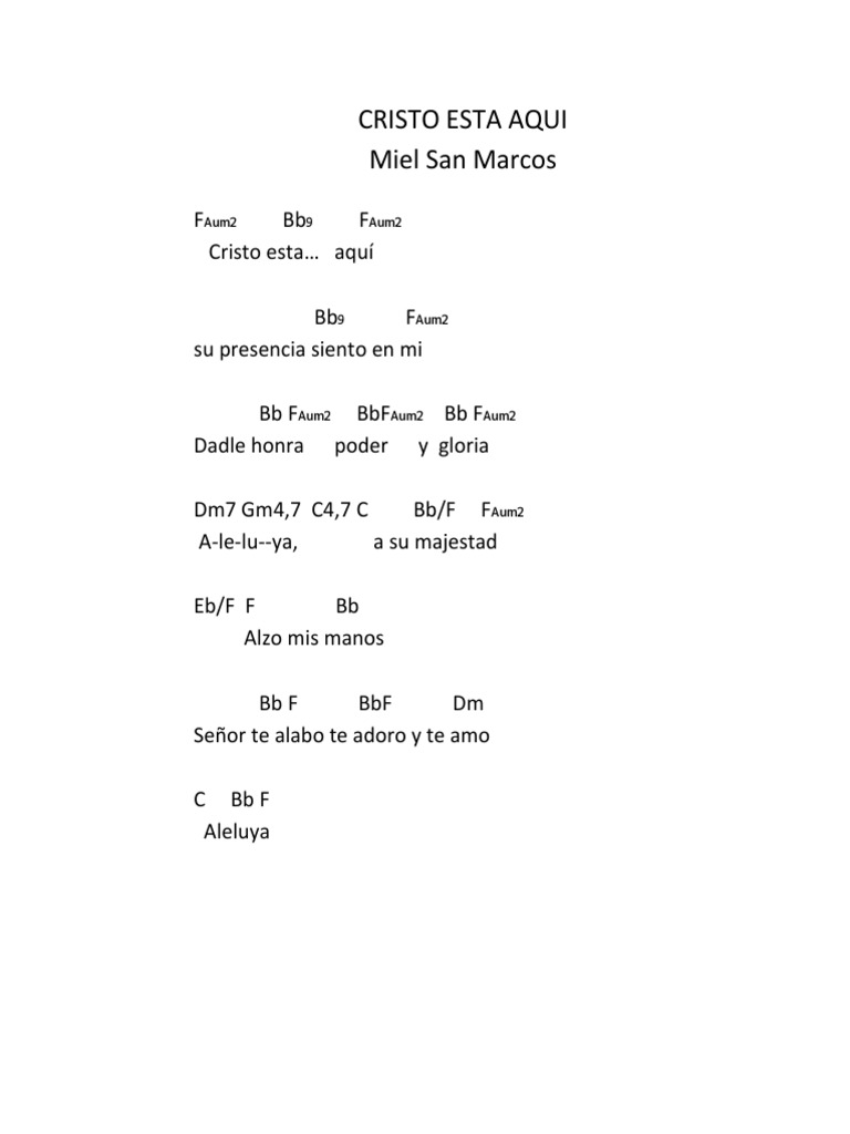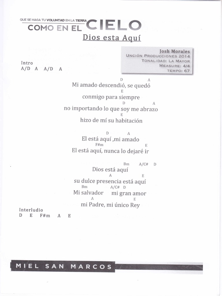 Dios Esta Aqui Acordes Miel San Marcos - Este es mi clamor, es mi oracion. Dios Esta Aqui Acordes Miel San Marcos : Espiritu 1santo bienvenido a 4este lugar.