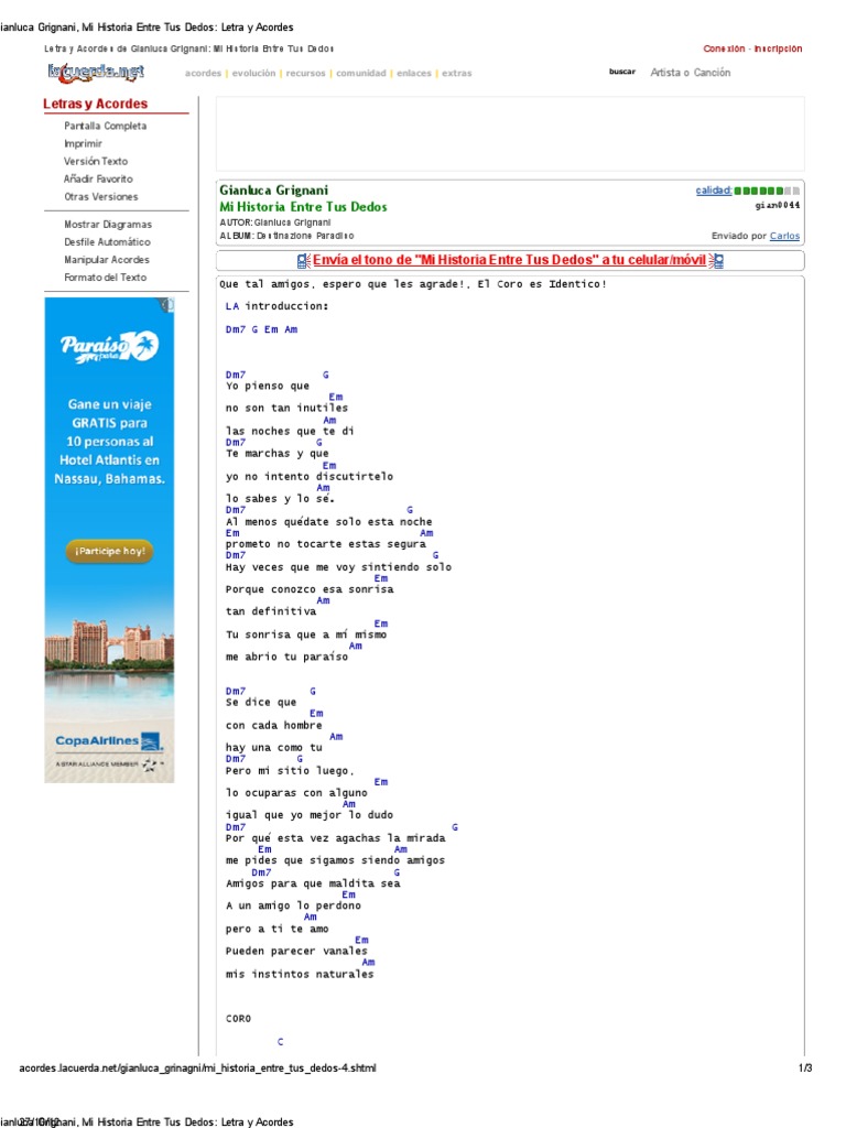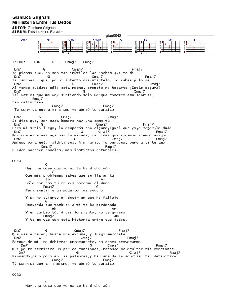 Mi Historia Entre Tus Dedos Acordes - Y en cambio tu dices lo siento no te quiero. Mi Historia Entre Tus Dedos Acordes : Que acordes son estaos dm7 g cmaj7 fmaj7.